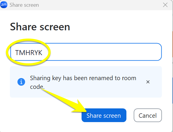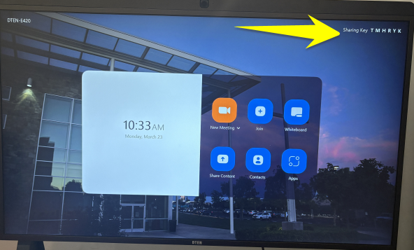 How direct share to DTEN Follow Jeremy Cunningham March 23, 2026 17:35 Updated To direct share your screen to DTEN: 1. Find the "sharing key" on the DTEN screen. 2. Open Zoom on your device and click the Share Screen button. 3. Enter the sharing key and click Share screen. Related articles Sharing Sound to DTEN on Mac and iOS How to reboot a DTEN DTEN Quick Reference Guide Install Windows Updates How to join or host a meeting on DTEN Comments 0 comments Please sign in to leave a comment.