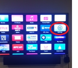 Using the Apple TV remote click on the Settings icon from the main menu screen