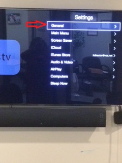 Finally, if AirPlay is on and you still don't see your classroom, Restart the Apple TV. To do this go back to Settings =>General=>Restart (Note: be sure you do NOT choose Reset)